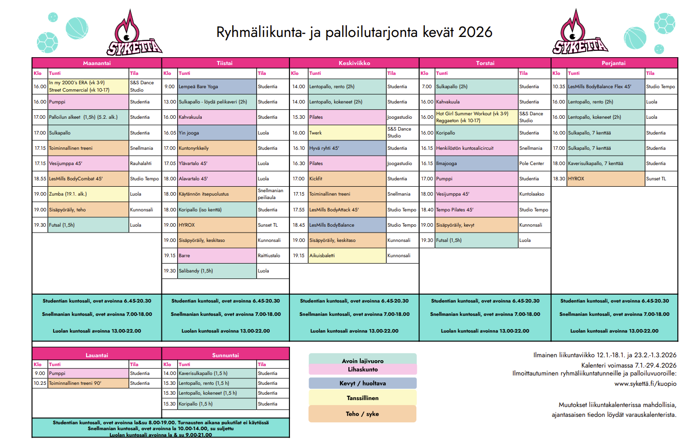Liikuntakalenteri voimassa 7.1.-29.4.2026